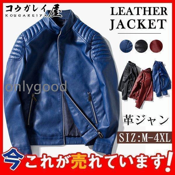 ライダースジャケット メンズ 革ジャン レザージャケット フェイクレザー バイク 立ち襟 防風 PU アウター 秋冬 冬服 バイカー