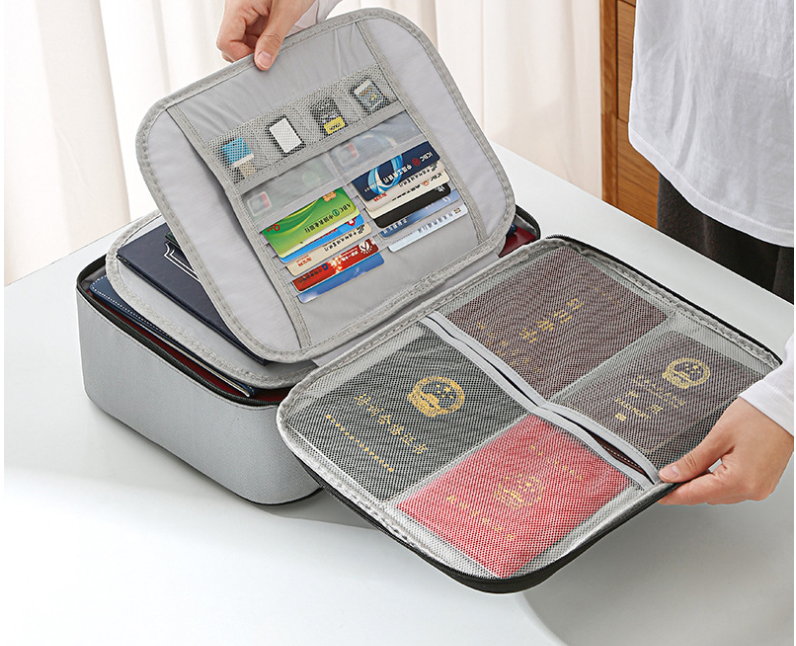 耐火バッグ 耐火ケース 耐火金庫 書類ケース 集金袋 手提げ金庫 貴重品入れ 大容量 鍵付き 金庫 耐火 収納ボックス 3層式