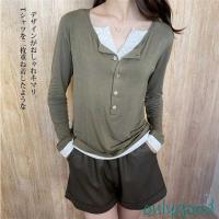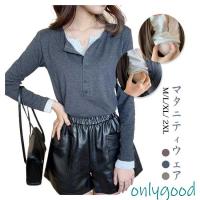 授乳服 長袖 カットソー ヘンリーネック Tシャツ 重ね着風 レイヤード マタニティウェア 外出 授乳口付き 無地 産後 トップス 春 秋