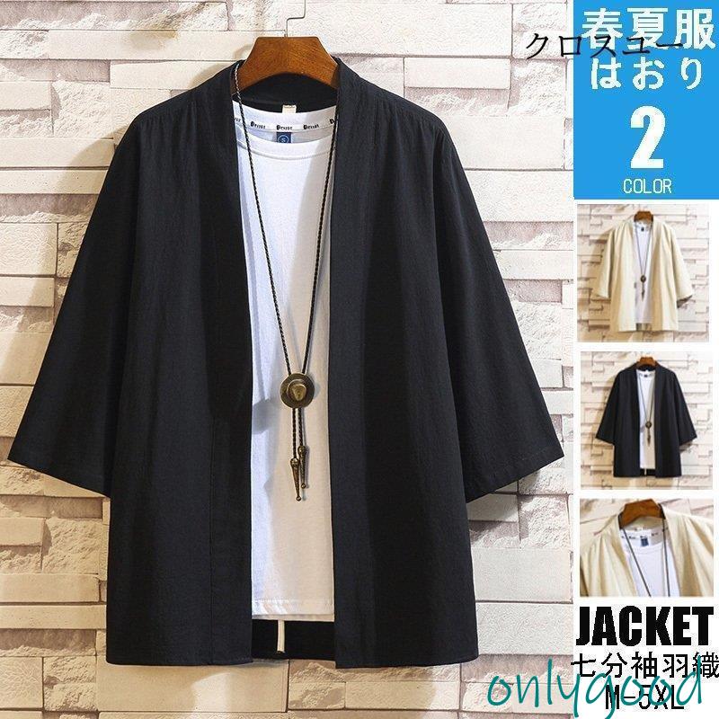 羽織 メンズ 甚平風 着物 綿麻 浴衣風 夏服 はおり 七分袖 男性用 和式 花火大会 おしゃれ 父の日