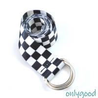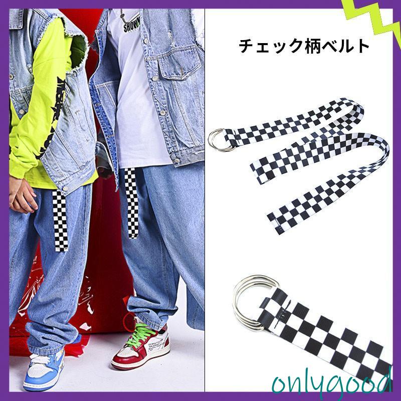 ブラックホワイトチェック柄ベルト ダンス衣装 キッズ ヒップホップ リングベルト ロゴテープ ダンスファッション