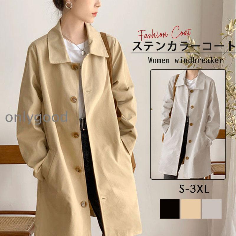 コート ステンカラーコート レディース ジャケット 秋 ロング 長袖 アウター 春 ブルゾン スプリングコート ビッグシルエット 着痩せ