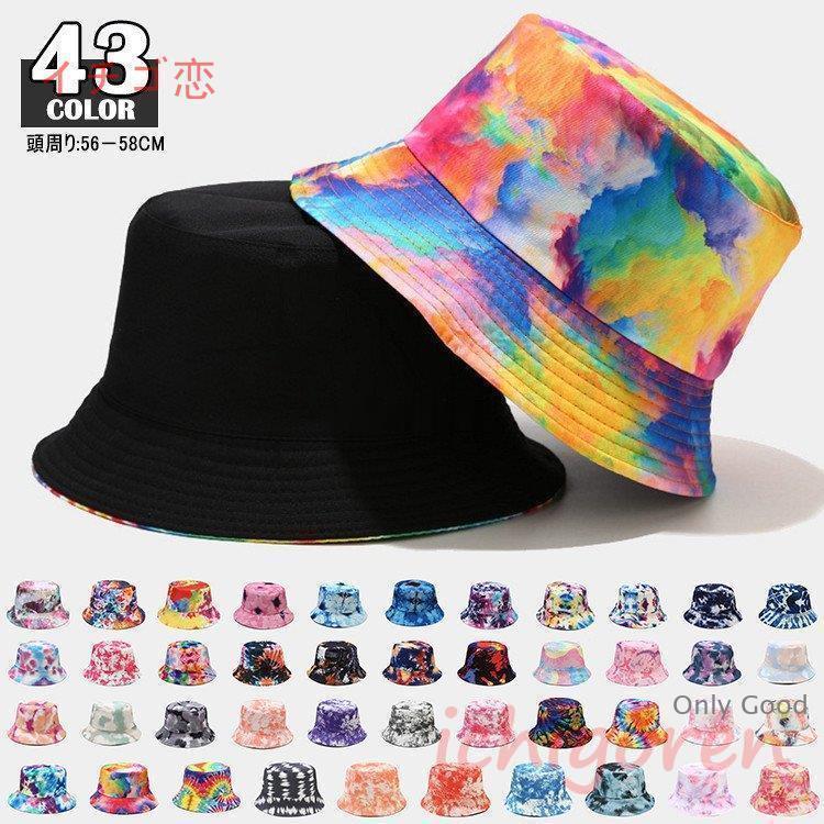 バケットハット リバーシブル メンズ レディース 43色 大きい ハット 帽子 キャップ つば広帽子 夏 絞り染め カラフル オーロラ