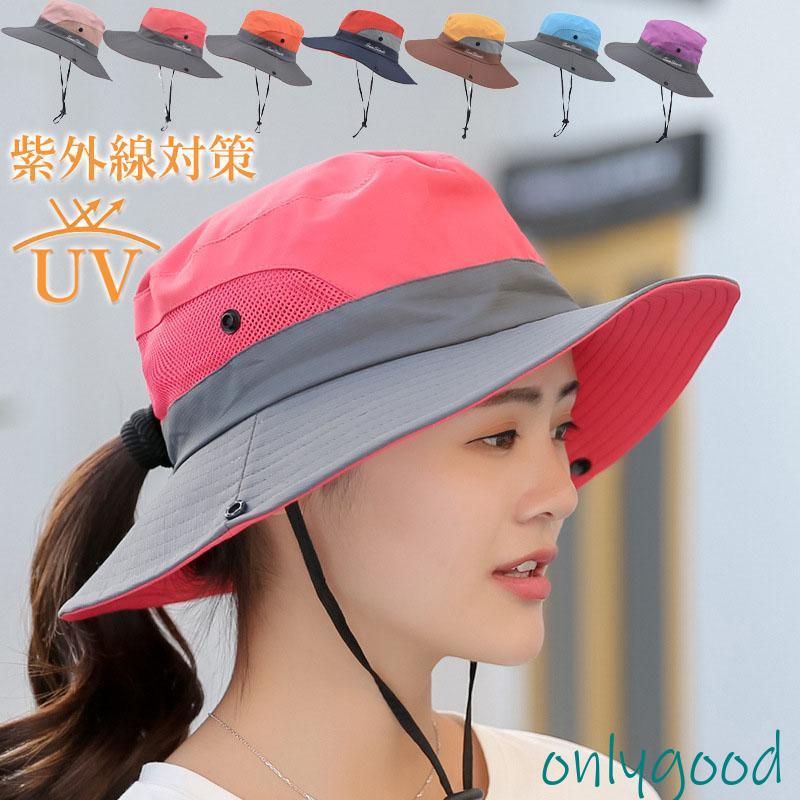 サファリハット 帽子 メンズ レディース UVカットハット 通気 日除け つば広 ハット キャップ 登山 釣り ストラップ付き