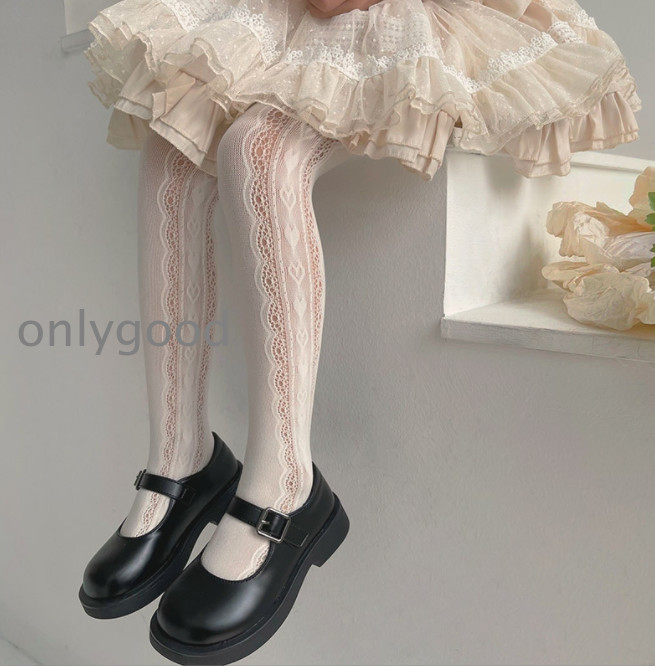 タイツ レースタイツ ストッキング キッズ 子ども用 女の子 リボン ハート 薄手 パンスト レッグウェア シンプル かわいい おしゃれ