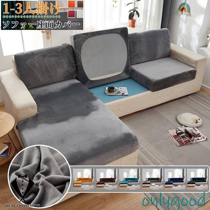 ストレッチ ソファー座面カバー スエード クッションカバー 伸縮素材 ソファーカバー ソファー クッション カバー 四季兼用 無地 かけるだけ 洗える 洗濯可