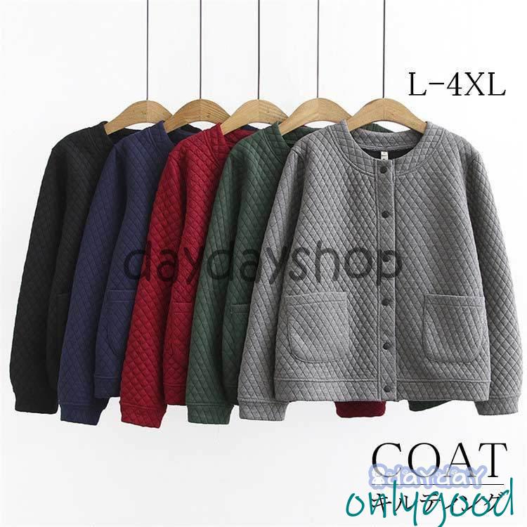 キルティングジャケット レディース 春秋冬 ノーカラー アウター コート ショート キルト 羽織り 上着 長袖 軽量 防寒 シンプル 無地 ボタン留め