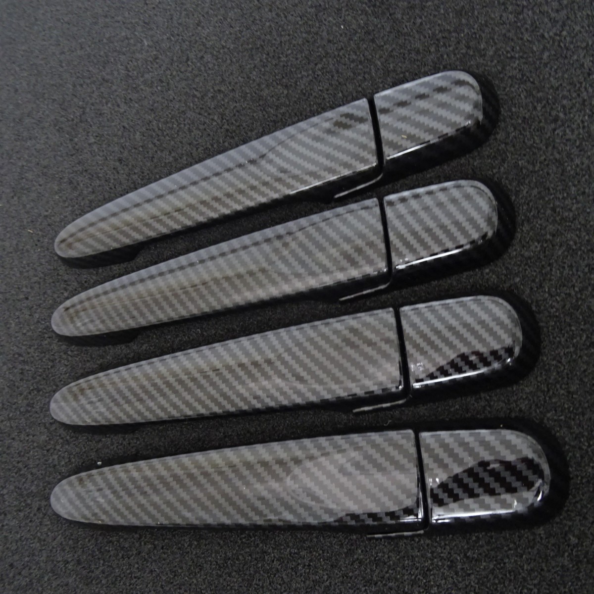 <BR>用カーボンルックドアハンドルカバー(8Pセット)になります。新アイテムになります♪やはりカーボン柄が入るとスポーティーさがすごくでますね♪これカーボン調ですが最近の転写の技術はすごいのでかなり本物に近い雰囲気を出してくれています♪買って後悔することのない商品です♪写真の通りの組み合わせになります。装着予定のお車のキーレス穴の確認をお願いします。ほかのバージョンもございますので基本的にすべての組み合わせに対応可能ですのでご相談ください。想像以上に決まること間違いなしです!!他の人に差を付けるにはこれしかない!