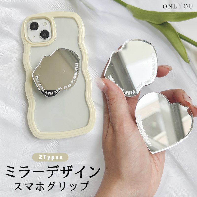 スマホグリップ 韓国 スマホリング magsafe 磁石 マグセーフ リング スマホ 落下防止 スマホスタンド グリップトック ミラー 鏡 ロゴ ハート シルバー