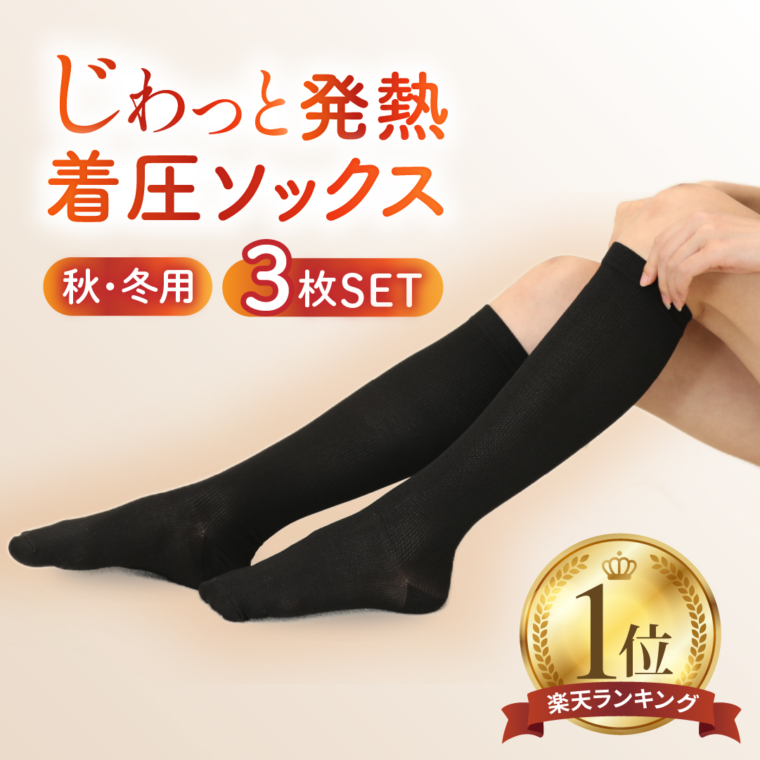 着圧ソックス 冬用 レディース 3足組 二段階式加圧 発熱 あったか レッグウォーマー