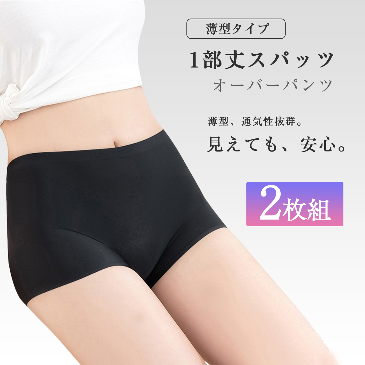 2枚組 薄型 オーバーパンツ レディース 黒パン 1分丈 スパッツ 黒 女の子 通学 学生 見せパン くろぱんつ すかぱん インナーパンツ スカートの下に履く