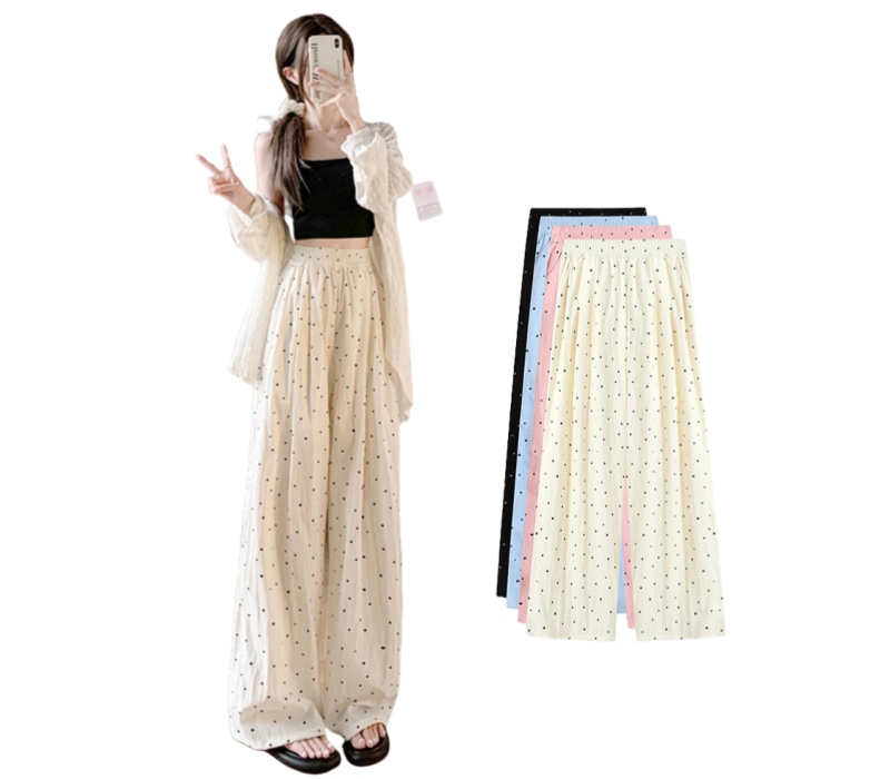 ワイドパンツ レディース ドット柄 パンツ ハイウエスト ガウチョパンツ 春夏パンツ 涼しい 冷感 楽ちんパンツ カジュアル ボトムス ゆったり シルエット 美脚