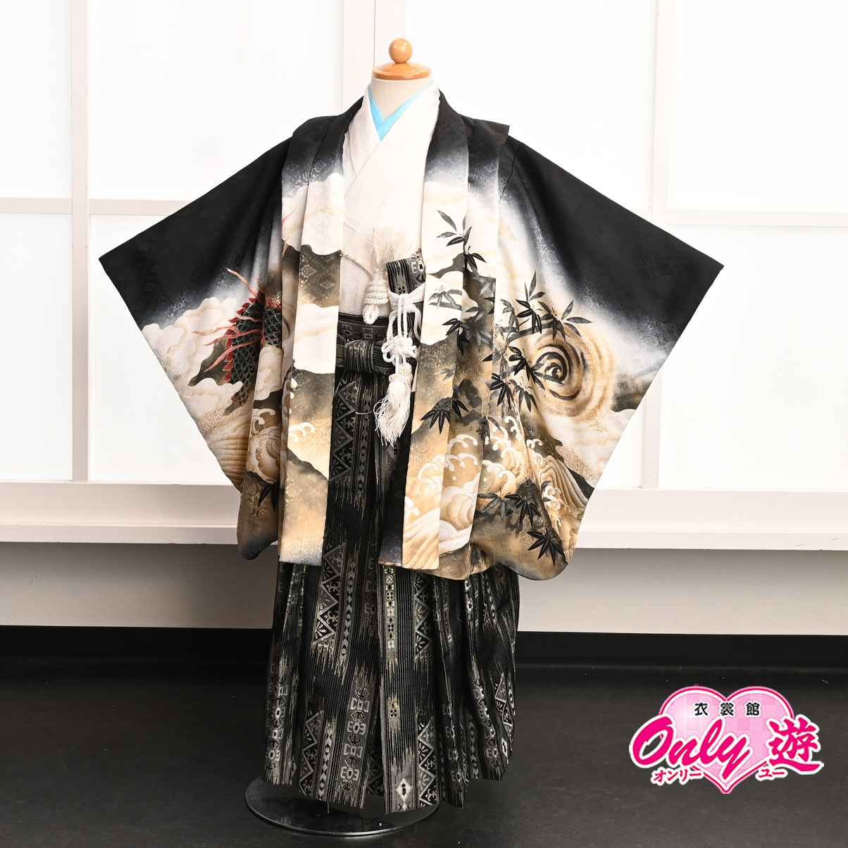 C24-0350S/男児羽織袴セット/5歳/04-641IM/和がまま/七五三レンタル/卒園式/男児AS/アンサンブル/黒/白/虎/龍/古典柄