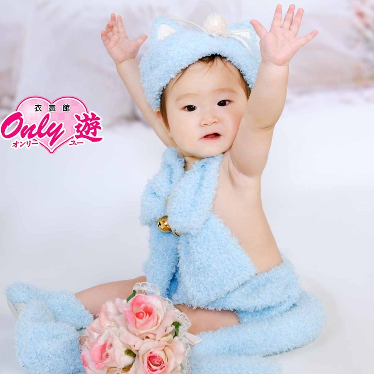 ベビーコスチューム/MH-045KT/メルヘン衣裳/にゃんこちゃん/水色/着ぐるみ/100日〜1歳用/赤ちゃん/