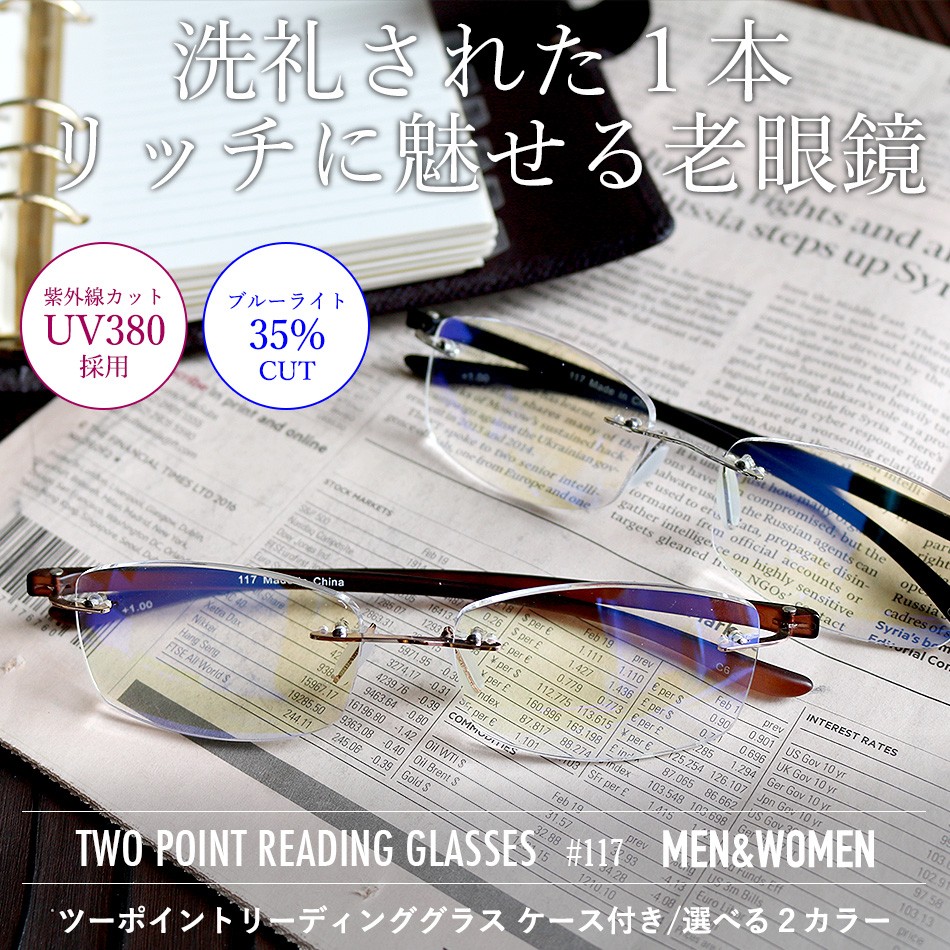 老眼鏡 かっこいい ツーポイント モデル 117 全2色 リーディンググラス おしゃれ 男性用 女性用 老眼鏡に見えないメガネ ブルーライトカット メンズ レディース
