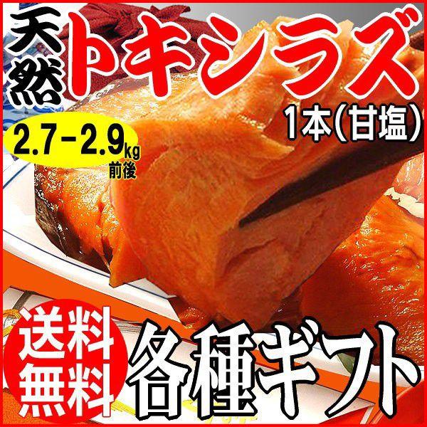 ポイント利用 この鮭(シャケ)は1キロ単位ではなく1本単位です。 今年も、北海道は根室の落石港に水揚げされた 新物の時鮭(トキシラズ)がに航空便で入荷しました。4月後半から7月にかけて、オホーツク、北太平洋海域で漁獲される「天然のトキシラズ」は、銀色に輝くばかりの、まだ魚体が小さめの若い鮭ですが、焼いて食べると、脂の旨みが、なんともこたえられない味わいです。輸入の鮭とは全く違う天然のトキ鮭の美味しさを味わってください。甘塩の約2.8kg前後(約2.7kg〜約2.9kgくらい)の時鮭を限定3本販売します。この時鮭は、一本売りのため切り身での販売はしておりませんので、ご了承下さい。 (高級食材 最高級)産地直送 ネット限定 ギフト 贈答用 時間指定OK 売れ筋