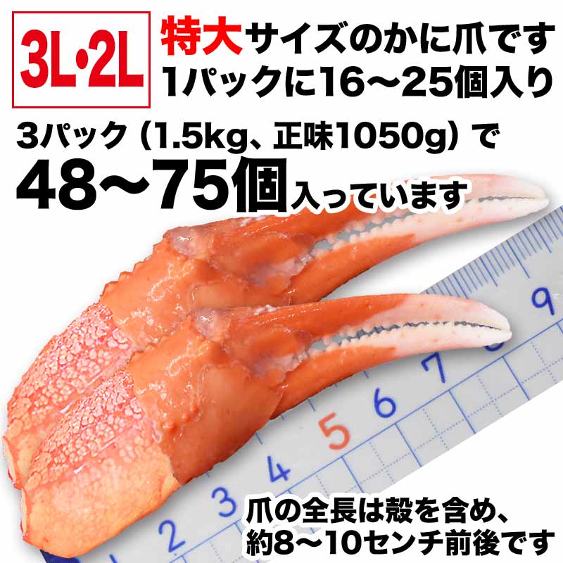 爆買 (カニ かに 蟹) ボイル 国産 北海道産 特大3L・2L 紅ズワイ カニ爪肉 約1.5kg《約500g(正味350g)×3パック》 送料無料 ポイント利用