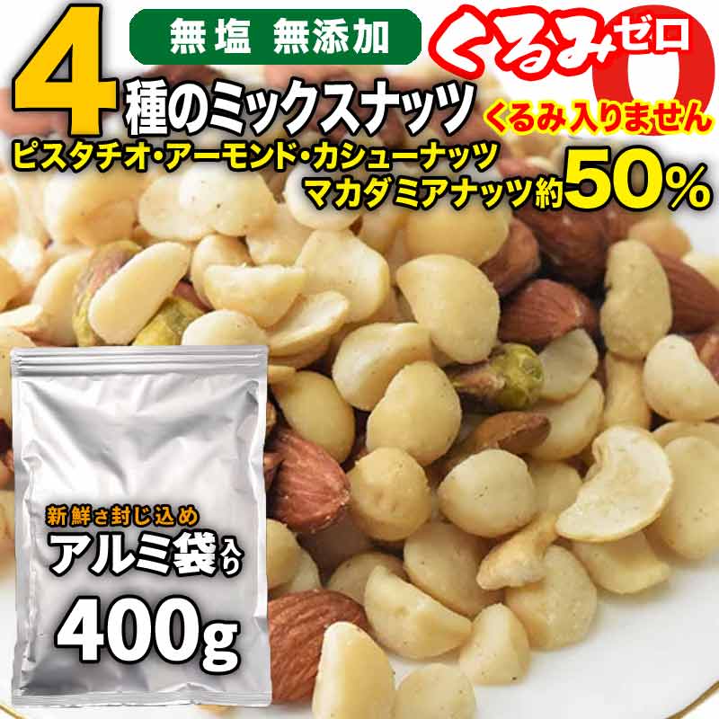 爆買 くるみゼロ ミックスナッツ セール 無塩 無添加 4種 400g ポイント利用 おつまみ 訳あり くるみ無し マカダミア アーモンド カシュー