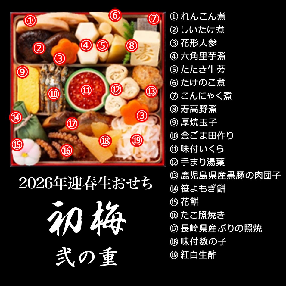 ポイント利用 おせち おせち料理 2026生おせち 冷蔵 和風 初梅 二段重 2〜3人前 30品目