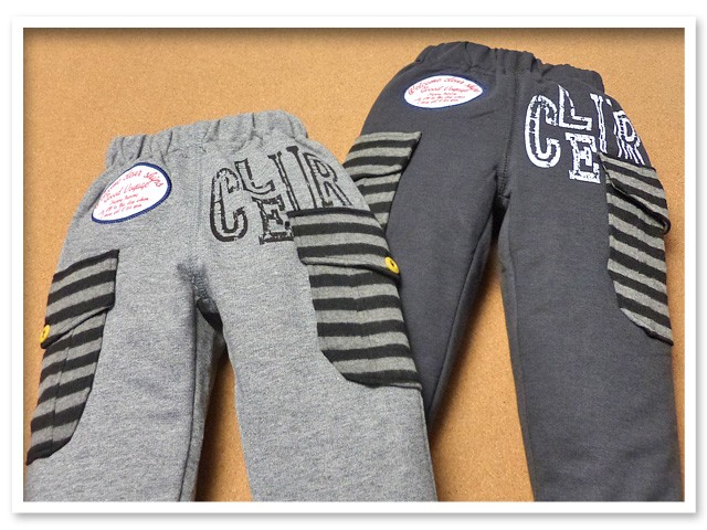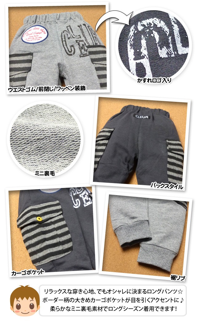 ベビー服 男の子 ロング カーゴ パンツ ボトム ミニ裏毛 ボーダーポケット かすれロゴプリント ワッペン 裾リブ ウエストゴム 男児 ベビー 80cm 90cm 95cm メール便不可