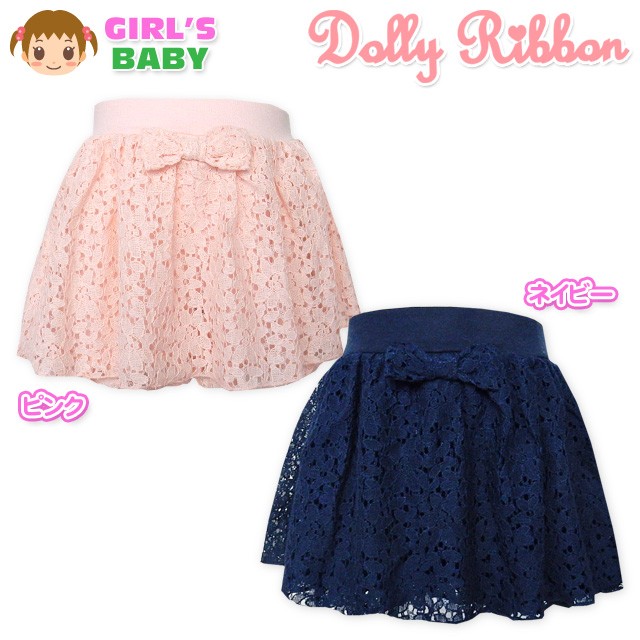 ベビー服 女の子 スカパン Dolly Ribbon ドーリーリボン ボトム 花柄レース ミニ裏毛 リボン ウエストゴム 女児 ベビー 90cm 95cm メール便OK