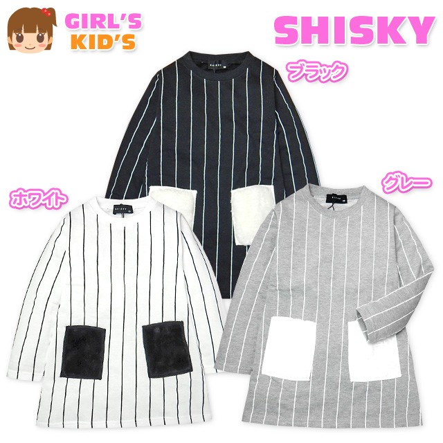 子供服 女の子 ワンピース 長袖 SHISKY シスキー 裏毛 ストライプ柄 シャギーポケット 女児 キッズ 110cm 120cm 130cm メール便OK