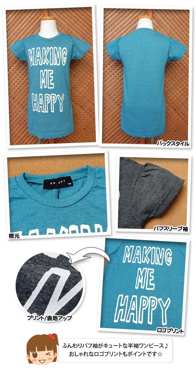 子供服 女の子 ワンピース 半袖 SHISKY シスキー パフスリーブ袖 ロゴプリント 女児 キッズ 110cm 120cm 130cm メール便OK