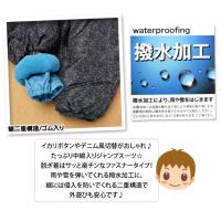 | コメント | イカリボタンやデニム風切替がおし ゃれ♪たっぷり中綿入りジャンプス ーツ☆脱ぎ着はサッと楽チンなファ スナータイプ!雨や雪を弾いてくれ る撥水加工に、裾には侵入を防いで くれる二重構造で外遊びも安心です ♪ |