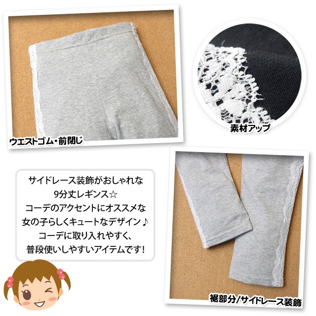 | 特長 | ・LOVE POWERS(ラブパワーズ) ・9分丈 ・レギンスパンツ ・サイドレース装飾 ・無地 ・ウエストゴム ・子供用 ・女の子 |