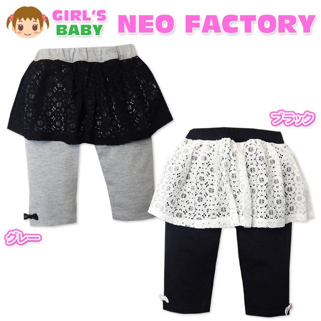 | 特長 | ・NEO FACTORY(ネオファクトリー) ・スカッツ ・スカート×スパッツ ・無地 ・レース ・裾リボン装飾 ・前閉じ ・子供用 ・女の子 |