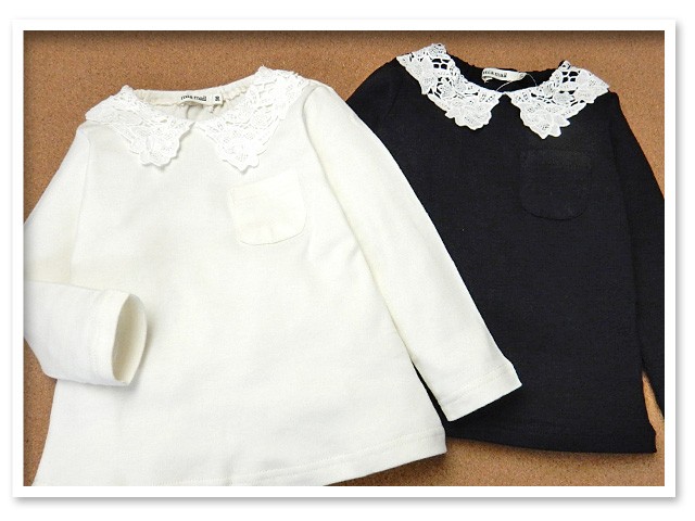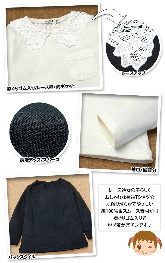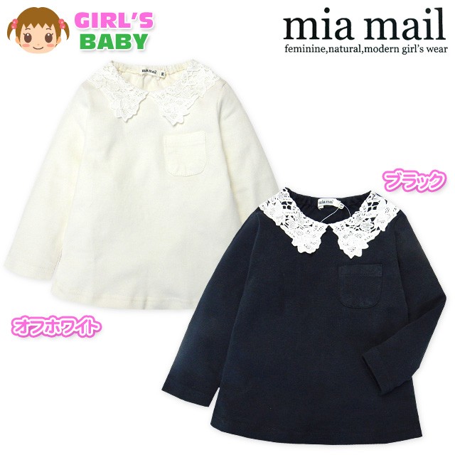 ベビー服 女の子 Tシャツ 長袖 mia mail ミアメール 綿100% スムース レース襟 女児 ベビー 90cm 95cm メール便OK