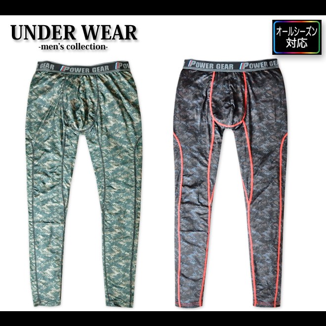 メンズ 肌着 タイツ ロング ピクセル迷彩 ストレッチ 吸汗速乾 UVカット フラットシーマ縫製 プリント インナー アンダーウエア メール便OK