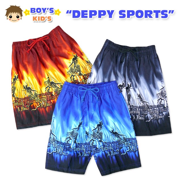 送料無料 男児キッズ 水着 DEPPY SPORTS ドラゴン&英字デザイン サーフパンツ メール便対応