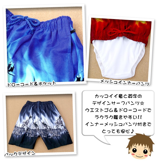 【男児キッズ】【水着】【DEPPY SPORTS】ドラゴン&英字デザイン サーフパンツ メール便OK