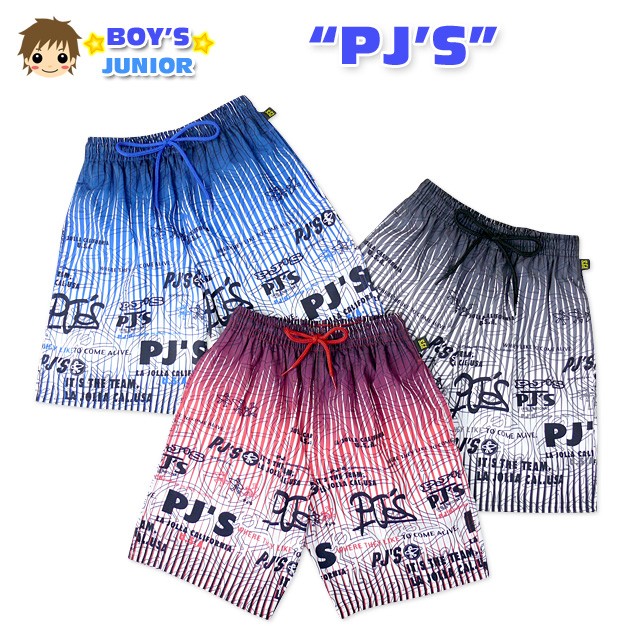 送料無料 男児ジュニア 水着 PJ'S 総柄デザイン&タグ装飾 サーフパンツ メール便対応