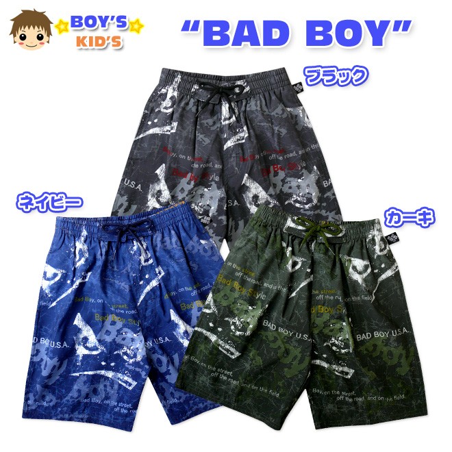 送料無料 男児キッズ 水着 BAD BOY/バッドボーイ ブランドロゴプリント入り 大寸サーフパンツ130cmメール便対応