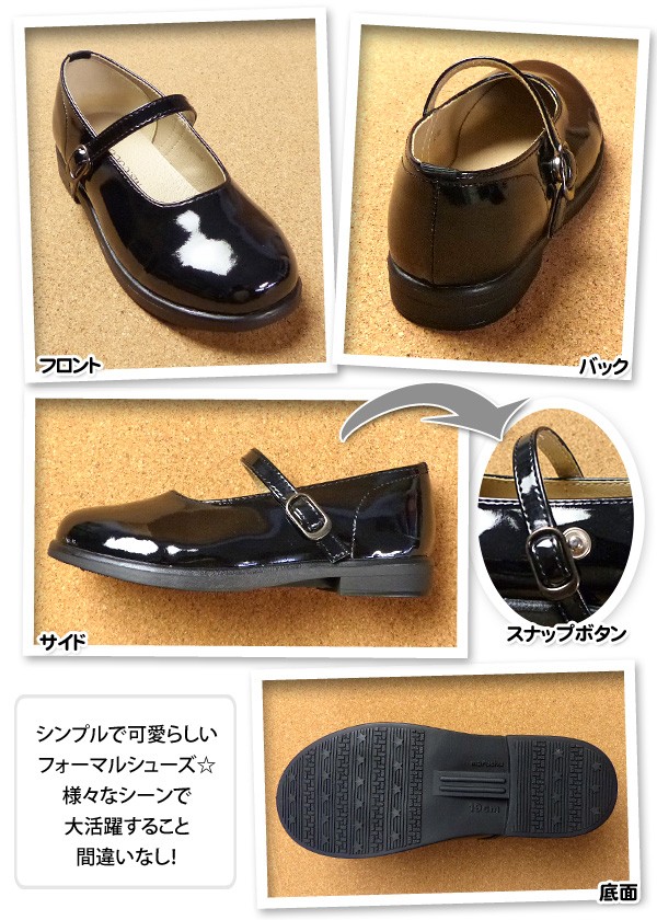 子供 フォーマルシューズ 靴 女の子 スナップボタン留め 女児 キッズ 15cm-19cm メール便不可