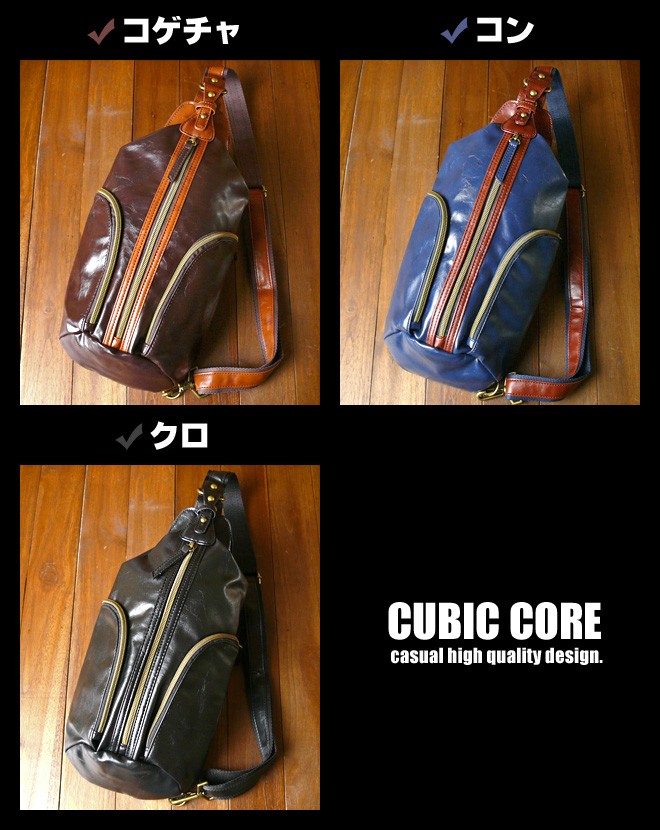 【ボディーバッグ】【CUBIC COBE】シンメトリーデザインソフト合皮レザーボディーバッグ メール便不可