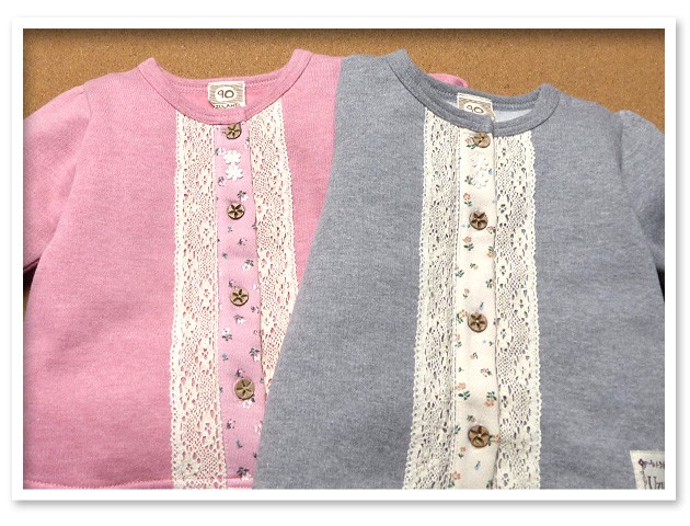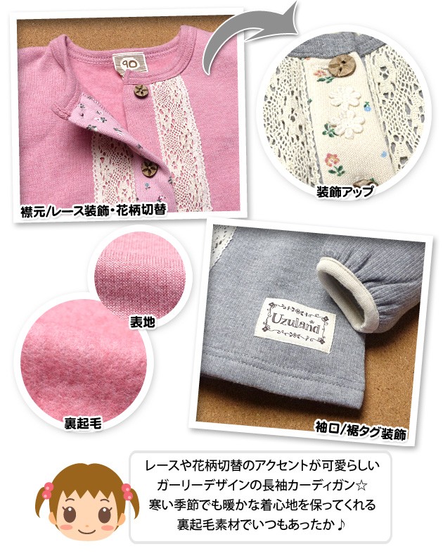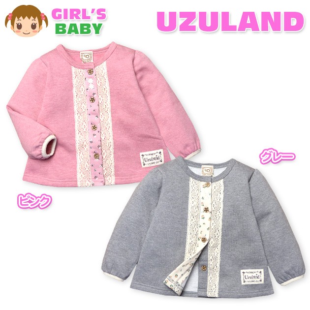ベビー服 女の子 アウター カーディガン UZULAND 裏起毛 レース使い 花柄 女児 ベビー 80cm 90cm 95cm メール便不可