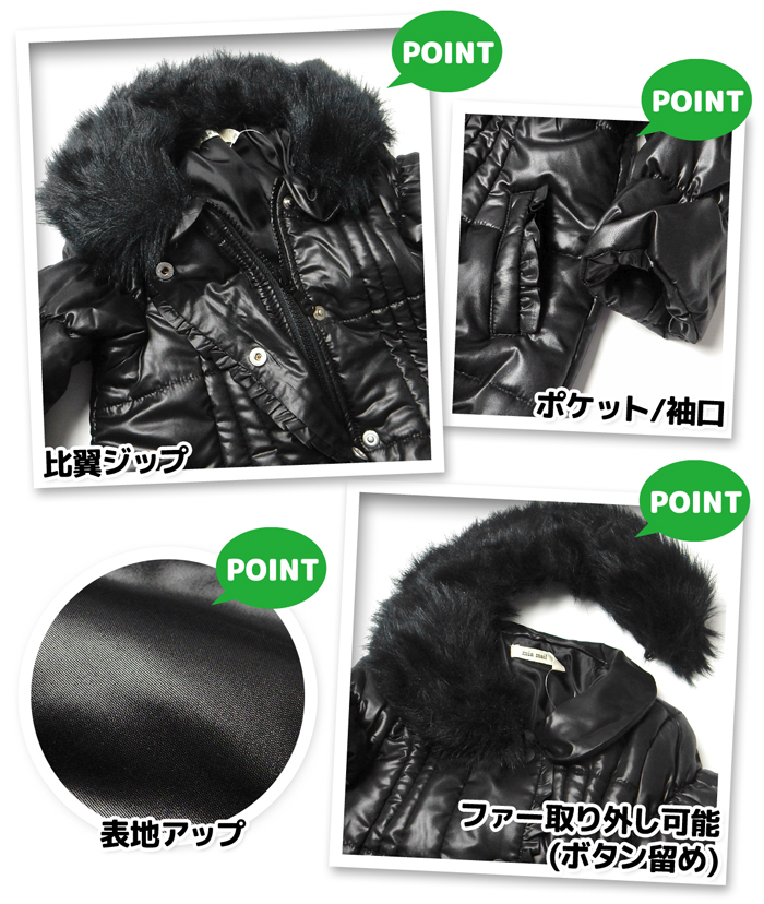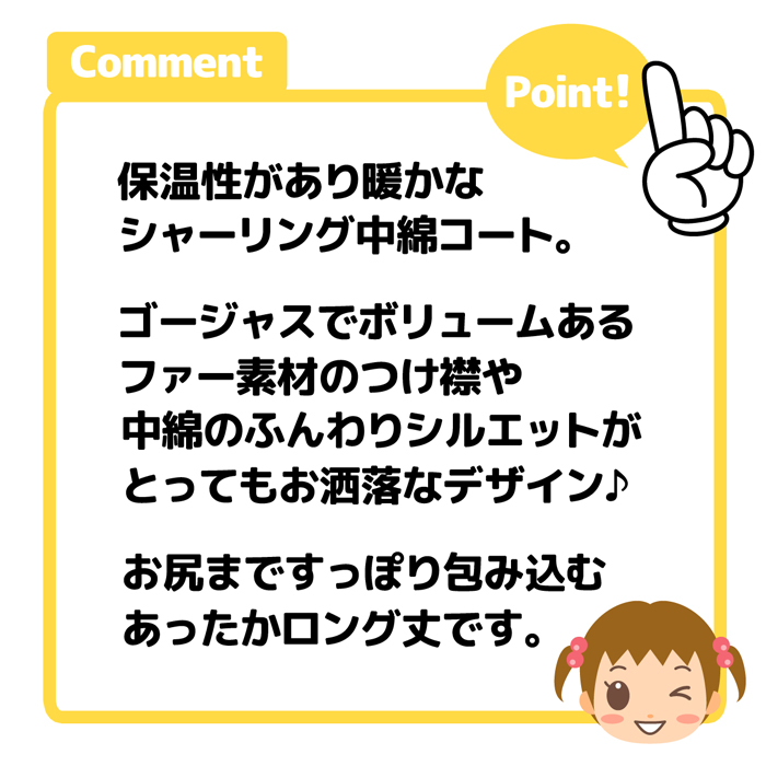 送料無料 女児 ベビー 中綿 ロング コート アウター あったか 保温 比翼ジップ ファー付け衿 ベビー服 女の子 90cm 95cm 3bb-1216b-bb