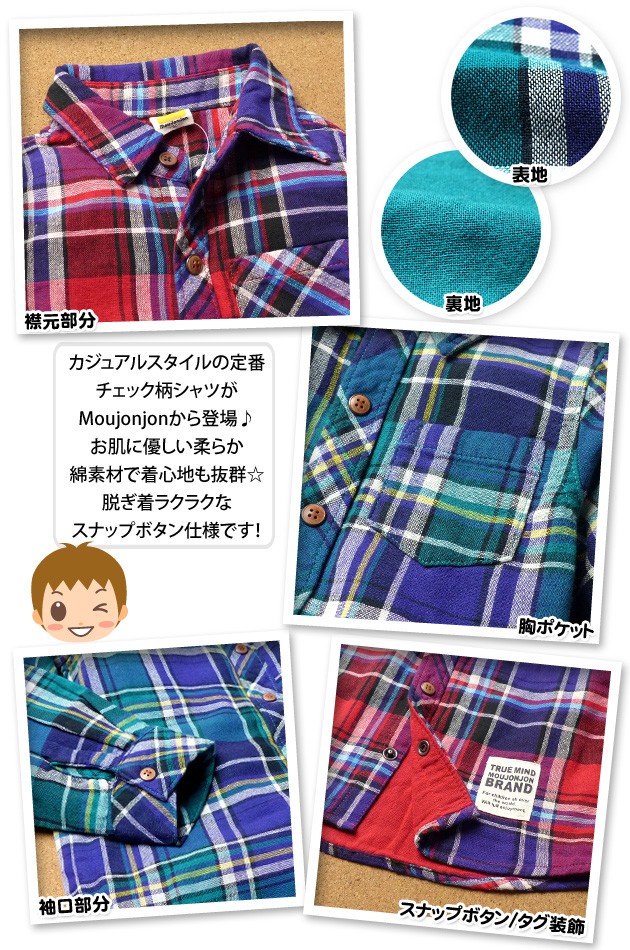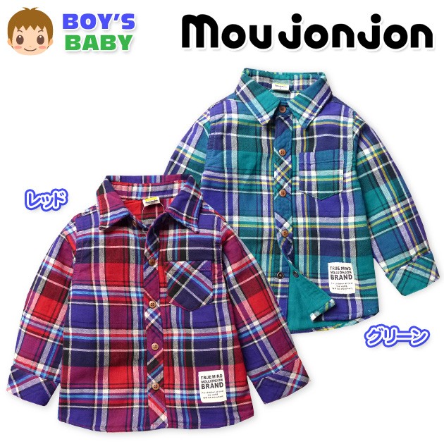 ベビー服 男の子 シャツ 長袖 moujonjon ムージョンジョン チェック柄 スナップボタン 男児 ベビー 90cm 95cm メール便不可