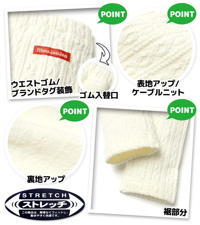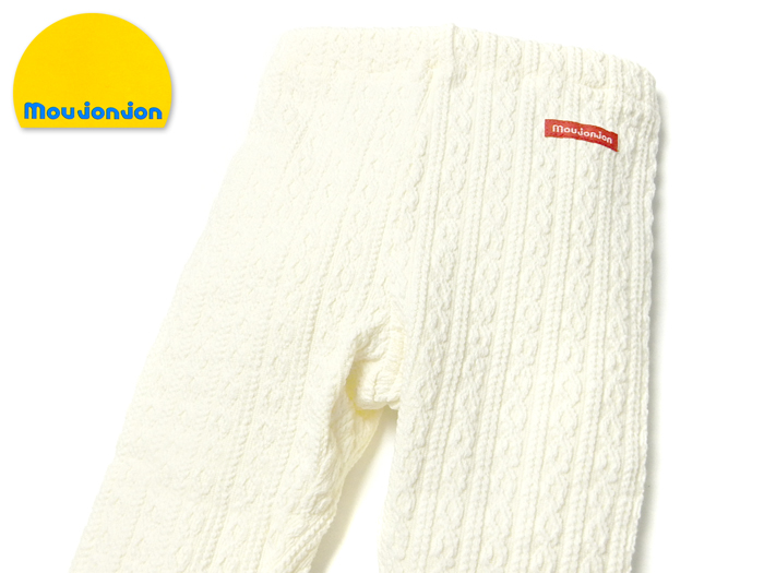 送料無料 女児 ベビー ケーブルニット 9分丈 レギンス moujonjon/ムージョンジョン ストレッチ 日本製 ボトムス 95cm 3bb-1502a-ow メール便対応