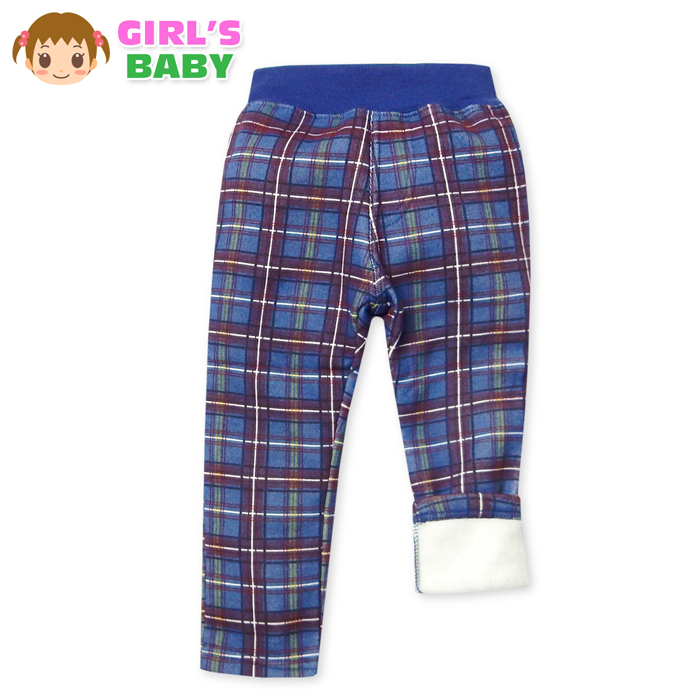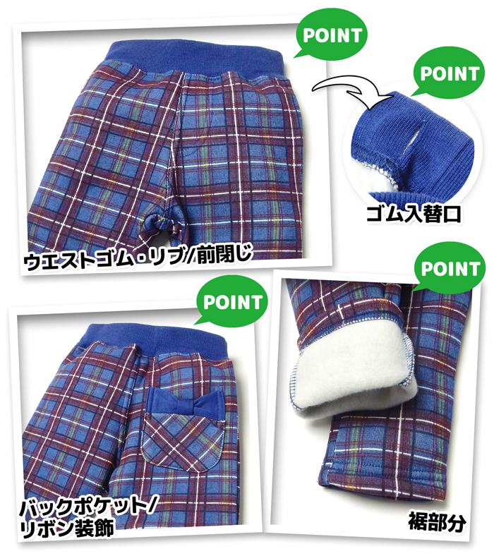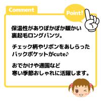 送料無料 女児 ベビー 裏起毛 ロング パンツ あったか 保温 チェック柄 リボンポケット ウエストゴム ボトムス 3bb-1583b-bl メール便対応