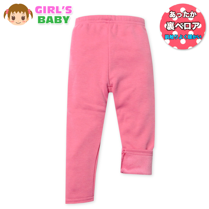 送料無料 女児 ベビー 裏ベロア ロング レギンス あったか 保温 ストレッチ 厚地 ウエストゴム ボトムス 95cm 3bb-1584a-pk メール便対応
