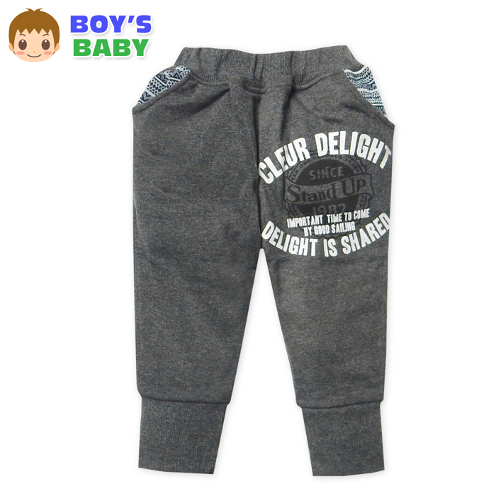 送料無料 男児 ベビー 裏起毛 ロング パンツ あったか 保温 裾リブ 柄切替 ボトムス ベビー服 男の子 90cm 95cm 3bb-1605b-cc メール便対応