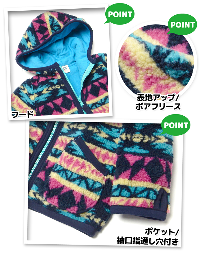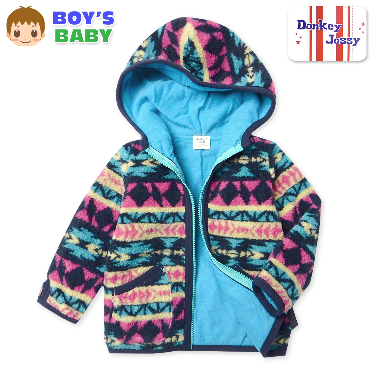 送料無料 男児 ベビー ボアフリース ジャケット アウター あったか 保温 裏トリコット フルジップ フード付き ベビー服 男の子 95cm 3bb-362b-bl