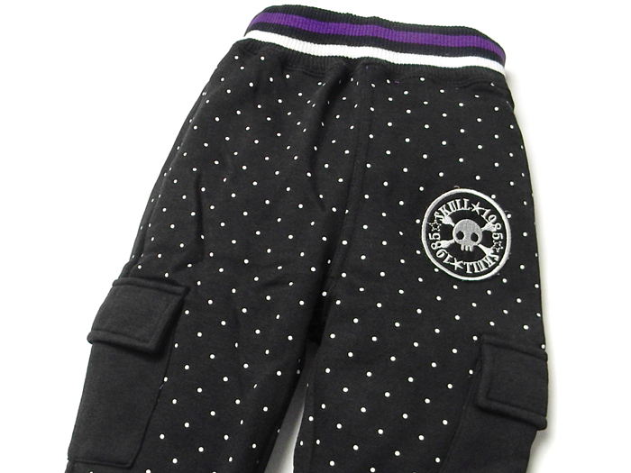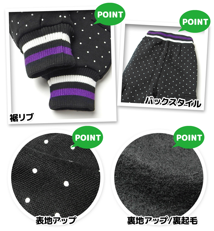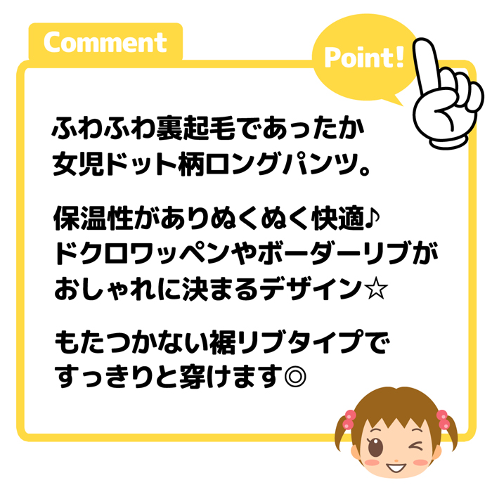 送料無料 女児 ベビー 裏起毛 ロング パンツ あったか 保温 裾リブ サイドポケット ドット柄 ボトムス 女の子 90cm 3bb-545a-wt メール便対応
