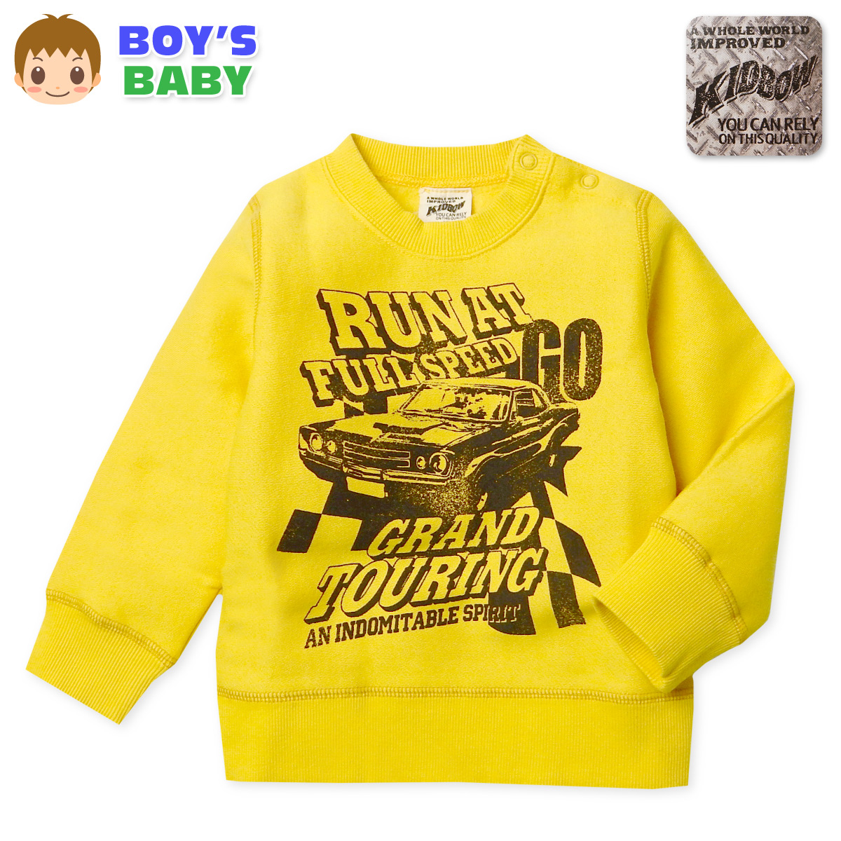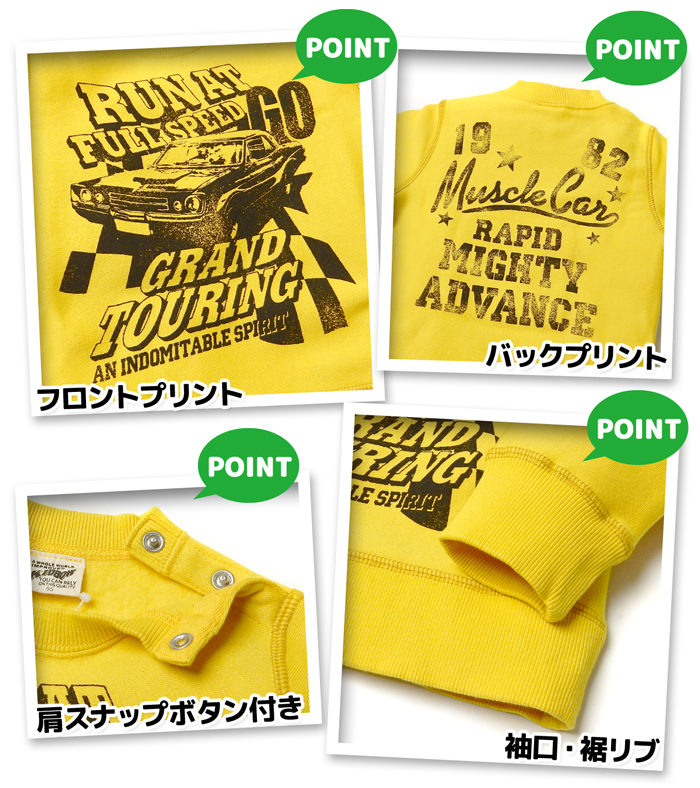 送料無料 男児 ベビー 裏起毛 長袖 トレーナー スウェット あったか 保温 スナップボタン ベビー服 男の子 95cm 3bb-546a-ye メール便対応