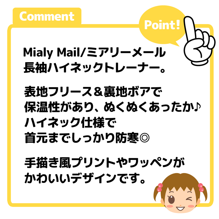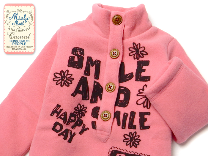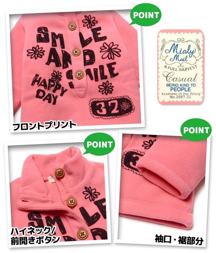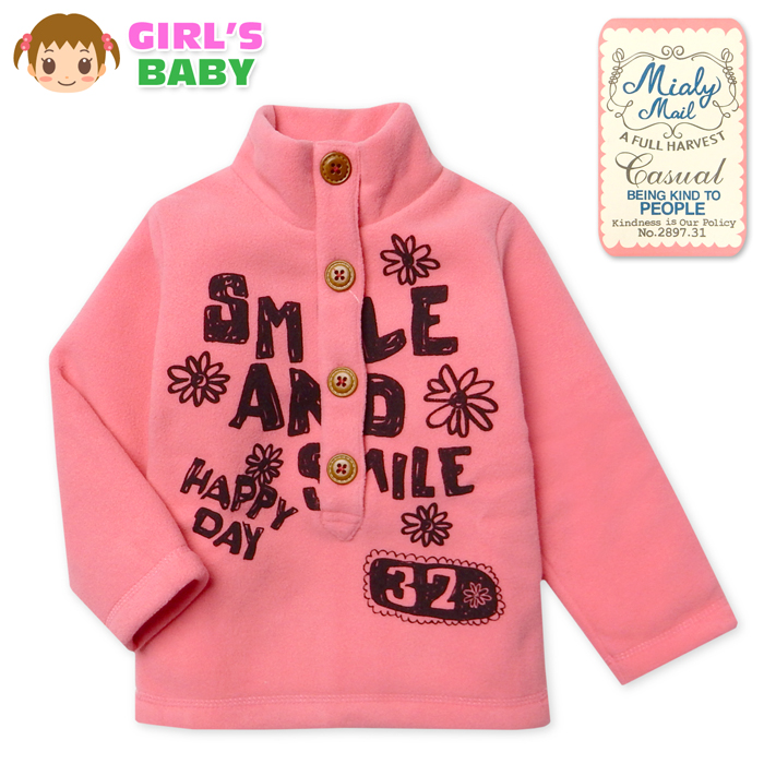 送料無料 女児 ベビー フリース&ボア 長袖 トレーナー ハイネック あったか 保温性 90cm 95cm 3bb-550a-pk メール便対応