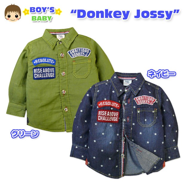 男児ベビー シャツ Donkey Jossy/ドンキージョシー ワッペン装飾付き ダブルガーゼボーイスカウト風長袖シャツ90cm 95cm